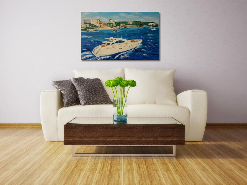 Titel: Côte d’Azur Feeling Grösse: 80 x 50 cm Maltechnik: Ölfarbe auf Baumwoll-Leinwand aufgezogen auf Holzkeilrahmen Preis Original: auf Anfrage Preis Druck: auf Anfrage Kaufen